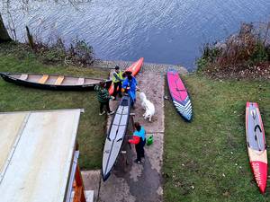 Glücklicherweise war trockenes, mildes und sonniges Wetter nur an diesem Tag, so dass sich 15 Kanuten am KKI Bootshaus einfanden. Auf 3 SUP-Brettern, in 2 Canadiern und in vielen Kajaks ging es gemächlich über den See zum Bootshaus RAWA, wo wir auf weitere Paddler auf dem Bezirk trafen. Dort gab es eine längere Pause mit Glühwein, Suppe und Kuchen. Nach unserer Rückkehr genossen wir Glühsaft und Glühwein. Einige spielten dann noch in den oberen Räumen Tischtennis. So endete unsere letzte Gemeinschaftsfahrt in 2025. Wir freuen uns schon auf die gemeinsamen Touren in 2026.