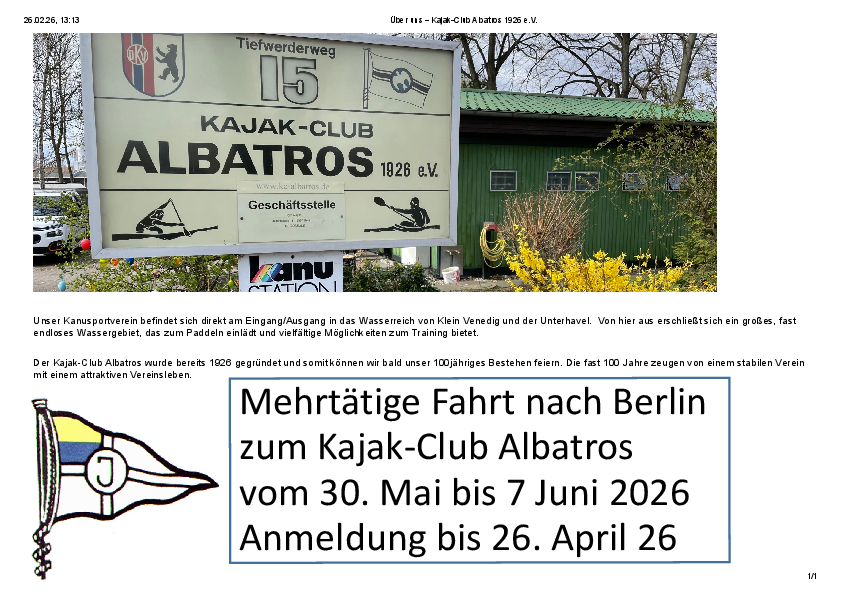 die Webseite Vereinsfahrt nach Berlin Mai/Juni 2026 als