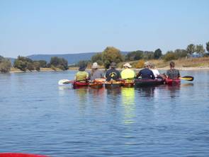 17 Kanuten starteten vom Verein die Ruhr abwärts nach Kettwig zum KSC Kettwig, der 60 Jahre mit einem Sommerfest feierte. Nach 9 km mussten die Boote durch die Staumauer in Werden transportiert werden. Am Steg brütete ein Blesshuhn. Es hielt eisern das Nest besetzt, obwohl eine "Horde" Menschen mit Booten ganz nahe vorbei stapften. Nach weiteren 7 km war der KSC erreicht, wo man uns freundlich empfing und beim Aussteigen und Bootetragen half. Es gab Frisches vom Grill, aus dem Fass und Kaffee und Kuchen. Diese Fahrt hatte sich gelohnt.