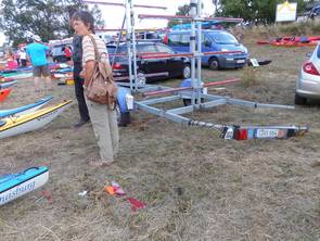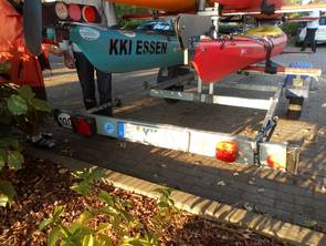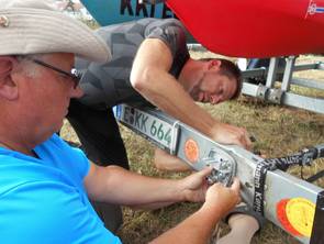 Mit Entsetzen mussten wir feststellen, dass unser Bootsanhänger um 90 Grad verschoben worden war: Der Schaden am Heck war beträchtlich. Niemand hatte etwas gesehen oder sich gemeldet. Der Schaden bleibt auf dem KKI hängen. Unser Reperaturheld Manni hat schließlich mit Materialien aus seinem Bus und viel Improvisation unser Wochenende gerettet.