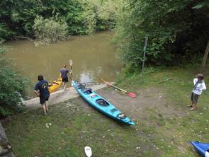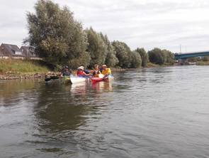 Mehrere Tage vor dem Fahrttermin bangten wir um den Wasserstand der Niers. Glücklicherweise gab es dann in der Woche vorher einen Regentag mit ordentlich Wasser. So konnten 7 Leute des KKI in Wetten einsetzen: Hier gab es unter dem schweren "Paulchen" noch zwei Finger breit Wasser. Danach wurde es immer besser: Genügend Wasser unter den Kielen - keine Grundberührungen. Die glasklare Niers floss überraschend flott. An der Umtragestelle bei Schloss Wissen gab es eine längere Butterbrotpause. Weiter ging es immer um zahlreiche Flöße, Schlauchboote und Mietkanus herum zum Ziel "Jan an de Fähr'", wo wir uns ausgiebig labten. 21 km, die sich gelohnt hatten. Vor allem der erste Abschnitt ist es wert, gepaddelt zu werden.