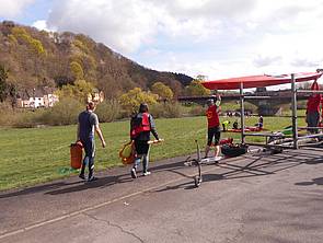 Beim Verladen der Boote hörte der Regen auf; beim Abladen der Boote in Eitorf schien die Sonne und blieb für den Rest der Fahrt bei uns: Welch herrlicher Frühlingstag!