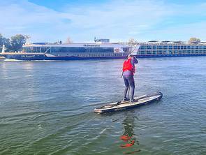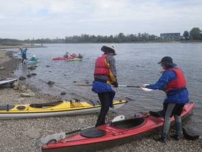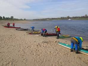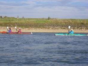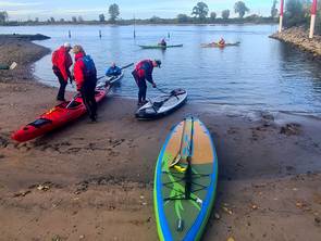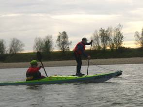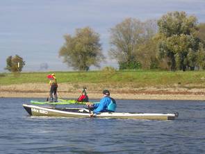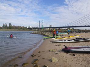 Unser schon traditionelle Herbstfahrt auf dem Rhein führte uns über 33 km von der alten Fähre Neuss-Uedesheim bis Uerdingen. Auf 2 SUP Brettern und in Kajaks hatten wir 9 eine gemütliche Tour bei schönem Herbstwetter. Gelegentlich gabe es schwierige Passagen für die SUP-Paddler, wenn Gegenwind oder heftiger Wellgengang durch Frachtschiffe sie herausforderte. Das tat der gutem Simmung in der Gruppe keinen Abbruch. Trotz niedrigem Pegelstand und einer längeren Pause errichten wir nach 4 Stunden unser Ziel beim KC Uerdingen 05.